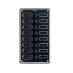 Bemutatkozik egy rendkívül funkcionális, nyolc kapcsolós vezérlőpanel, amely ideális széles körű elektromos alkalmazásokhoz az autóiparban, a hajózásban vagy az iparban. Ez a panel megbízható és biztonságos működésre készült, intuitív vezérlést biztosítva igényes körülmények között. Fő előnye a magas víz- és porállóság, IP65 tanúsítvánnyal , amely garantálja a problémamentes működést még kültéri környezetben is.