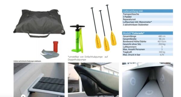 Az ALLROUNDMARIN COLORADO 480 cm egy felfújható kajak, amely ötvözi a rendkívüli tartósságot a könnyű hordozhatósággal. Az innovatív Trop-Stitch anyagnak – megerősített PVC-nek dropstitch öltéssel, mint a SUP-oknál – köszönhetően a kajak eléri a merev kenuk merevségét. Ez kiváló kezelhetőséget, stabilitást és optimális siklási képességet biztosít. Az iránystabilitást a speciális víz alatti konstrukció és a kivehető uszony növeli.