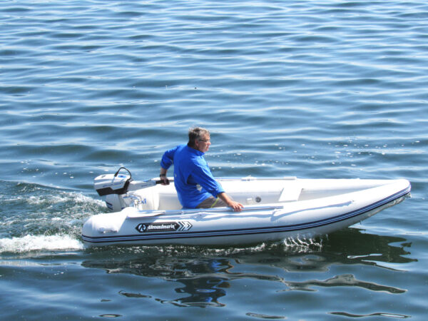 A hajó kompaktságát a mindössze 30 cm széles, fából készült fartükör (motorfartükör) is kiemeli, amelyet elegánsan kiegészít két rövid, felfújható tat. Ez a kialakítás optimalizálja a helyet és a súlyt, miközben megbízható rögzítést biztosít a motor számára. Az ALLROUNDMARIN YUKON 350 a könnyű szállíthatóság és a stabil vízi teljesítmény szimbóluma, ideális kalandokhoz.