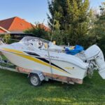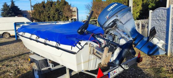 Eladó egy komplett vízi sportokhoz való szett: ANGELO MOLINARI 410 motorcsónak YAMAHA F25 motorral + utánfutóval . A szett jó műszaki állapotban van, ideális horgászoknak vagy hobbi vitorlázóknak.