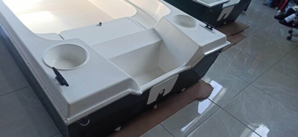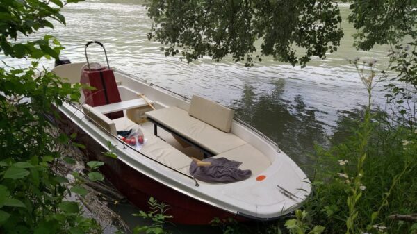 A Tisza Fishing Boat orra szépen vágja a nagyobb hullámokat is. Stabilitását jól jellemzi, hogy ha 3 fő kiül a csónak peremére egy oldalon, akkor sem borul föl. Ezt alább egy képen be is mutatjuk. A csónak orr és far részében kulccsal zárható tároló-rekesz van.