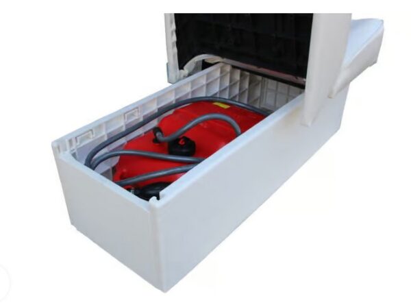 Kétszemélyes ülés műanyag vázzal. Az ülés vízszintes helyzetbe dönthető, így 166 cm hosszú alvókanapé alakítható ki.