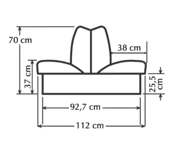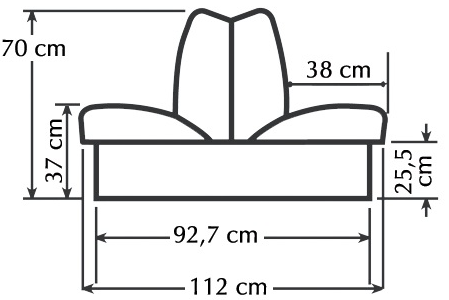 Kétszemélyes ülés műanyag kerettel. Az ülés vízszintes helyzetbe dönthető, így 166 cm hosszú alvókanapé alakítható ki.