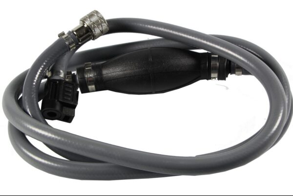 Ez a beépített kézi pumpával és speciális csatlakozókkal ellátott benzintömlő optimális kompatibilitást és megbízható üzemanyag-átvitelt biztosít, különösen HONDA motorokhoz. Ideális megoldás a hatékony tankoláshoz vagy átvitelhez, minimalizálva a szivárgás vagy szennyeződés kockázatát.