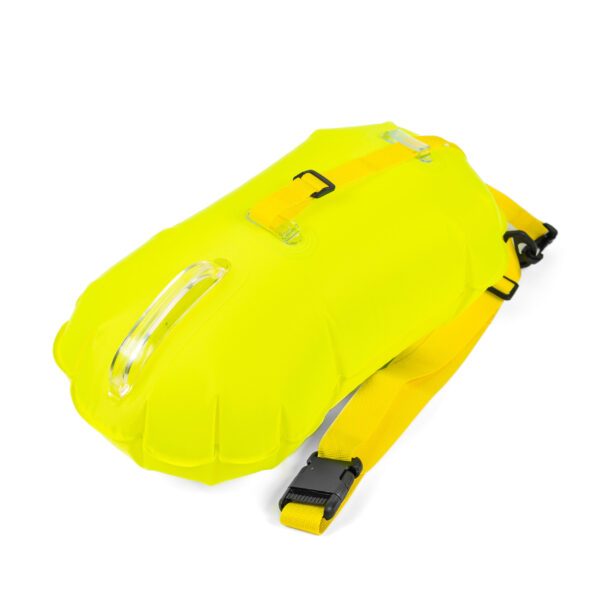 A könnyű felfújás és a kompakt méretek összecsomagolva biztosítják, hogy a bója könnyen hordozható és használatra kész legyen. Ideális edzéshez, hosszútávú úszáshoz vagy szabadidős úszáshoz tavakban, folyókban vagy tengerben.