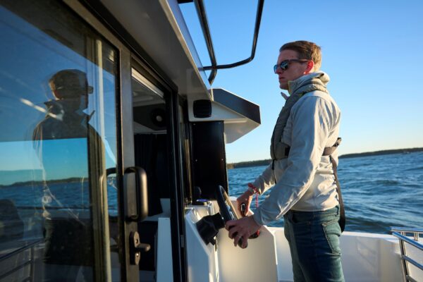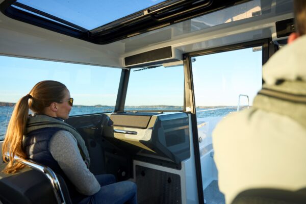 Belül egy világos kabin található hat üléssel és lehajtható padokkal a hátsó pilótafülkében, amelyhez opcionálisan külső kormányállomás is rendelhető. A 16 hüvelykes Buster Q intelligens kijelző az alapfelszereltség része. A belső tér tágasságát és prémium érzetét fokozza a nyitható napfénytető, az állítható navigációs ülés és a stílusos ülésvarrás.