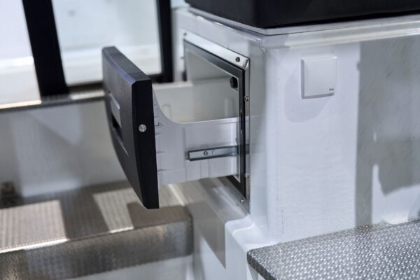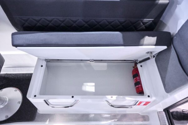 A hajó kiterjedt tárolási megoldásokkal rendelkezik, beleértve egy 350 literes orr-tárolót és egy opcionális hűtőszekrény számára kialakított helyet. A tetősínek és a targabár lehetővé teszi a különféle kiegészítők szállítását. A kabin átjárható kialakítású, könnyen megközelíthető és csúszásmentes alumínium padlóval rendelkezik. A robusztus kapaszkodók biztosítják a biztonságos beszállást.