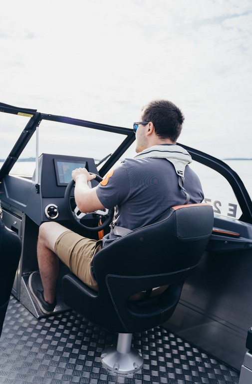A Buster XXL modern, sportos vonalai és hajótest-geometriája tükrözi sebességét és erejét. Akár nyugodt vizeken, akár hullámzó tengeren vitorlázik, a hajó sima és gyors utazást kínál. A robusztus, állítható ülésnek, a párnázott kartámasznak és a precíz hidraulikus kormányzásnak köszönhetően a kezelési élmény mindig első osztályú. A hajó stabilnak és fürgenek érződik, ami kivételes vezetési kényelmet garantál bármilyen sebességnél.