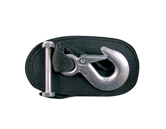 Ez a robusztus, horoggal és rögzítőcsavarokkal ellátott csörlőheveder nehéz terhek megbízható és biztonságos kezelésére szolgál. Ideális különféle csörlőkkel való használatra, akár hajókon, járműveken, ATV-ken vagy műhelyben végzett munkához. Azonnali és teljes megoldást kínál húzási és emelési igényeire.