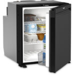 A DOMETIC CoolMatic NRX-80E hűtőszekrény modern és hatékony megoldást kínál járműve vagy hajója hűtésére. Ez a 75 literes kompresszoros hűtőszekrény innovatív kialakítással rendelkezik, amely elegáns fekete, keret nélküli előlapot és praktikus, folyamatos fogantyút foglal magában. Az optimális helykihasználásra tervezett, lejtős hátulja biztosítja, hogy tökéletesen illeszkedjen a fedélzeten található korlátozott helyre.