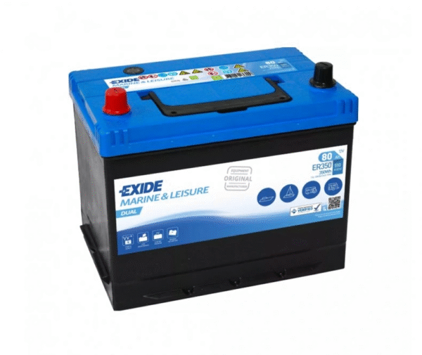 Az EXIDE DUAL Marine & Multifit 80Ah (ER 350) egy megbízható, kettős felhasználású vontatóakkumulátor, amely ideális hajókhoz, lakókocsikhoz és járművekhez, amelyeknek ciklikus terhelésre és azonnali indításra is szükségük van energiára. Ez az elárasztásos akkumulátor hatékonyan ötvözi a két energiaforrást egyetlen kompakt megoldásban, nagy teljesítményt biztosítva mind a fedélzeti rendszerek, mind a motorindítás számára rövid idejű áramfelvétel mellett.