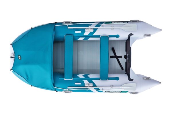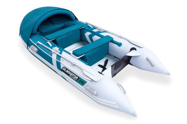 A Gladiator Active C370 AL egy tágas és robusztus felfújható csónak alumínium padlóval és felfújható gerinccel. Akár 5 fő számára is ideális, így tökéletes választás családi kikapcsolódáshoz, horgászokhoz és vízi sportokhoz, mivel akár 30 lóerős motor is csatlakoztatható hozzá. Luxusfelszereltséggel rendelkezik, beleértve az első sátrat tárolótáskával és puha ülésekkel.