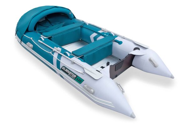 A Gladiator Active C420 AL egy tágas és sokoldalú felfújható csónak alumínium padlóval, ideális családi kikapcsolódáshoz, horgászathoz vagy vízi sportokhoz, akár 7 fő befogadására alkalmas. Robusztus, megerősített PVC-ből készült konstrukciójának, összecsukható alumínium padlójának és felfújható gerincének köszönhetően kiváló vezetési tulajdonságokat és stabilitást kínál még akár 40 LE-s erősebb motorral is. A C420 AL modellt a maximális kényelem és megbízhatóság jegyében tervezték tengeren és gátakon, így a családok, az igényes horgászok és az adrenalinlöketű vízi sportok szerelmesei egyaránt értékelni fogják.