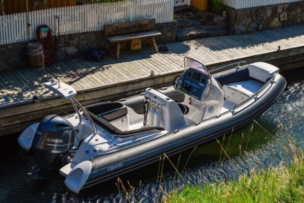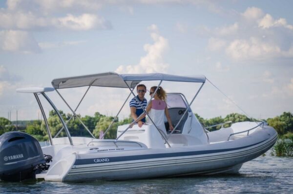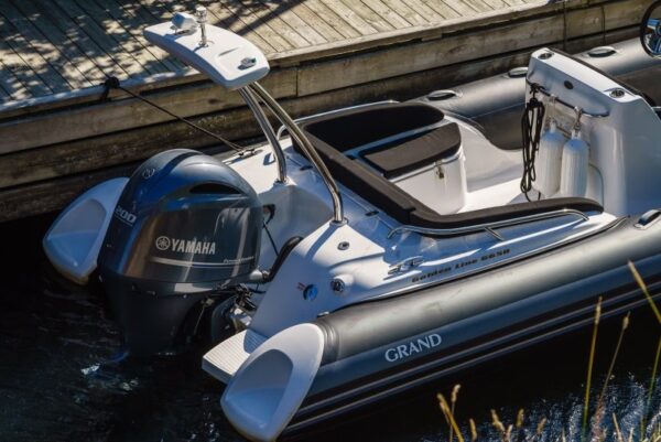 A GRAND Golden Line G650LF felfújható csónak egy legendás, 6,5 méteres félmerev csónak, akár 200 lóerős motorral. Több száz elégedett vásárló által tesztelt, funkcionalitásával, tágasságával és luxus kényelmével tűnik ki, ideális családi kikapcsolódásra.