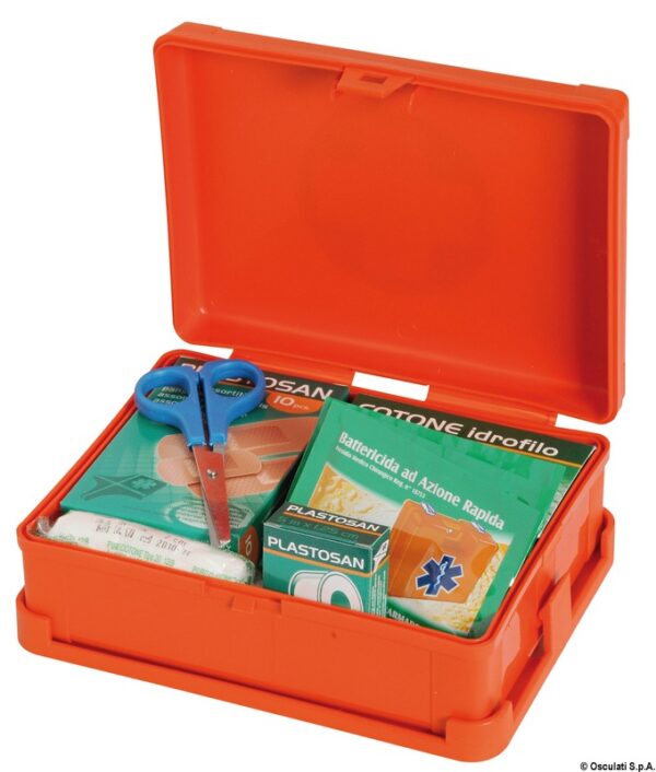 11 alapvető egészségügyi eszközt tartalmaz, amelyek biztosítják az elsősegélynyújtást a gyakori sérülések, vágások vagy kisebb balesetek esetén a fedélzeten. 13 × 18 × 7 cm méretének köszönhetően könnyen elfér a tárolóhelyen, és mindig kéznél van vészhelyzetben.