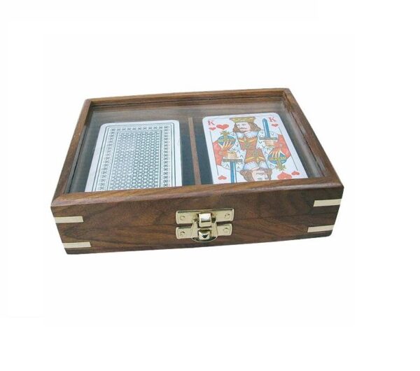 Ez a fából készült kártyatartó tökéletes kiegészítője lehet bármely klasszikus társasjáték-rajongónak, gyűjtőnek, vagy akár különleges ajándéknak is. Időtlen dizájnjának és minőségi kidolgozásának köszönhetően nagyszerű dekorációs eleme lehet a nappalinak, az irodának vagy a játszószobának. A masszív keményfa konstrukció tartósságot és hosszú élettartamot biztosít, míg a sárgaréz díszítések és az üvegfedél hangsúlyozzák prémium jellegét.