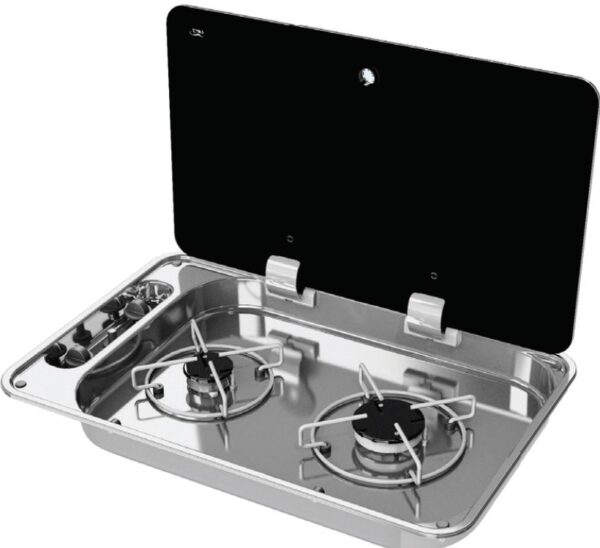 Bemutatkozik a két égős, rozsdamentes acél főzőlap színezett üvegborítással, amely ideális modern konyhákba, hajókra vagy lakókocsikba. Az 530×340 mm-es elegáns főzőlap a prémium dizájnt ötvözi a praktikus funkcionalitással, így stílust és hatékonyságot visz bármilyen helyiségbe. Megbízható teljesítményre tervezve, gyors és biztonságos főzést biztosít.
