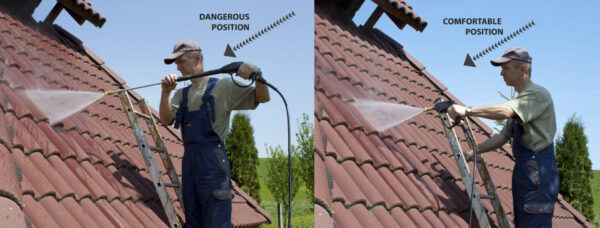 Különösen értékelni fogja homlokzatok és tetők kényelmes és alapos tisztítását, akár létráról is. A magasban végzett munka biztonsága és kényelme jelentősen javul ezzel a pisztollyal , ami növeli a termelékenységet és minimalizálja a fáradtságot.