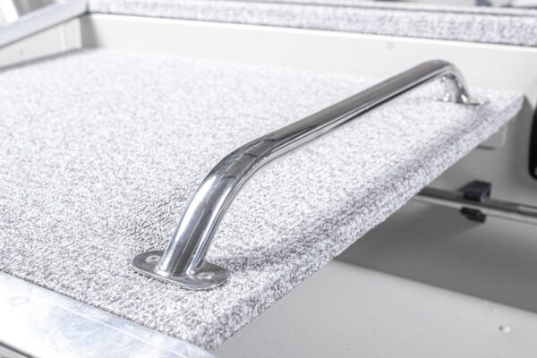 A MARINE 530 FAMILY egy kivételes alumínium hajó a népszerű Family sorozatból, amelyet az egész családnak és a korlátlan vízi szórakozásnak terveztek. 5,30 méteres hosszával és 357 kg-os súlyával könnyű kezelhetőséget és robusztus stabilitást kínál. Ideális pihentető hajóutakhoz, napozáshoz a tágas fedélzeten, vagy izgalmas vízi sportokhoz, mint például a vízisíelés és a wakeboardozás. A belső tér vinil borítású a biztonság és a csúszásgátló hatás érdekében. Az új, modern kék Family dizájn elegáns kék-fehér bevonattal biztosítja, hogy az 530 Family hajóval mindig a figyelem középpontjában leszel. A hajó kényelmesen elfér akár 7 felnőtt számára is, és tárolóhelyeket kínál az orrban és a hátsó padokban.