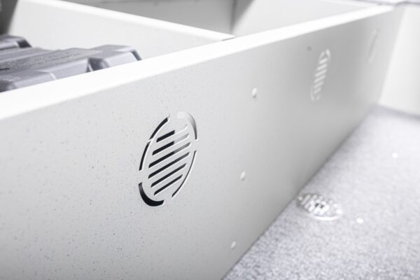 Az alapfelszereltség mindent tartalmaz a kényelmes és biztonságos vitorlázáshoz: DLX konzol kormányművel, párnázott ülések, navigációs lámpa, rozsdamentes acél létra fürdőplatformmal és 12 V-os csatlakozóaljzat USB-vel. Opcionálisan kárpitozás is választható két változatban a még nagyobb kényelem érdekében a stabilitás érdekében.