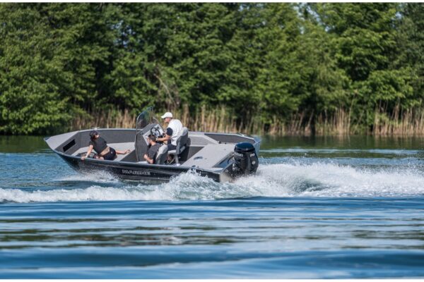 A MARINE 550 Fish SC DLX a Fish kínálatának legnagyobb alumínium hajója, amelyet a maximális kényelem és funkcionalitás jegyében terveztek. Kormánykonzollal (SC) és luxus kivitelben (DLX), beleértve a megemelt fedélzetet és az integrált üléseket, ideális horgászathoz és kikapcsolódáshoz egyaránt.