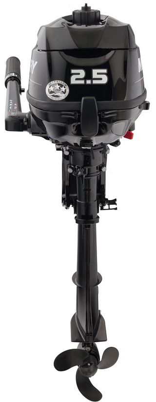 A Mercury F 2.5 FourStroke egy kompakt és rendkívül könnyű külmotor, amely ideális gumicsónakokhoz, ladikokhoz és kisebb horgászcsónakokhoz. Alacsony tömegének köszönhetően könnyen szállítható és gyorsan felszerelhető, így használható fő motorként kis csónakokon vagy segédmotorként nagyobb hajókhoz.