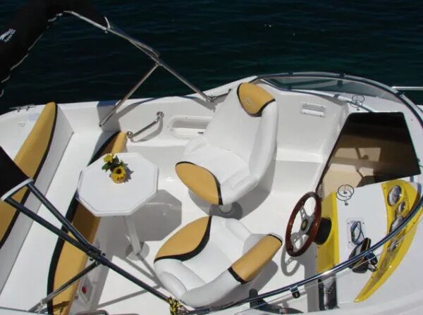 Az OLYMPIA YACHT 570 HOLIDAY ideális kabinos hajó szabadidős és sporttevékenységekhez belvízen vagy tengeren. Maximális kényelmet kínál a magas pilótafülke oldalainak, a forgóüléseknek és a tágas, tolóajtókkal és rengeteg tárolóhellyel ellátott kabinnak köszönhetően. A robusztus korláttal ellátott fedélzet biztonságos mozgást biztosít a hajón. Dinamikus és modern hajótest formája nagyszerű élményt garantál vitorlázás, horgászat és vízisíelés közben. Élvezze a megérdemelt pihenést!