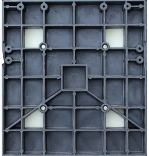 - Robusztus műanyag talp a maximális stabilitás és víz-, valamint UV-sugárzásállóság érdekében.