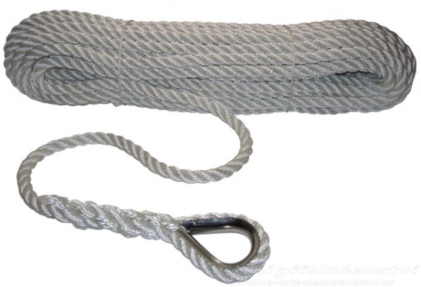 A kötélhez professzionálisan elkészített acél kötélszív tartozik, amely erős és megbízható lezárást biztosít a fedélzeti elemekhez vagy horgonypontokhoz való egyszerű és biztonságos rögzítéshez. A háromágú konstrukció hagyományos megjelenést garantál, miközben kiváló stabilitást és megbízhatóságot biztosít horgonyzás vagy kötés közben.