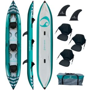 Két felnőtt és egy gyermek számára alkalmas, magas oldalakkal a stabilitás érdekében, lapos, bordázott aljjal pedig kiváló manőverezhetőséget biztosít. Biztonságos és kényelmes mind rövid, mind hosszú utakra csomagokkal.