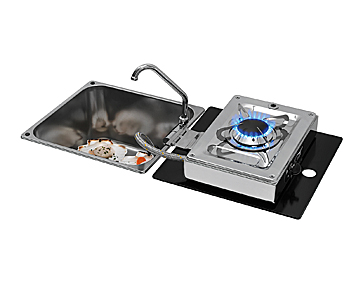 Kompakt, 320 mm x 350 mm-es külső méreteivel és 180 mm-es magasságával ez a mosogatós főzőlap könnyen telepíthető még a legszűkebb helyekre is. Egyetlen beépített égőfej elegendő teljesítményt biztosít az alapvető főzéshez, ételek melegítéséhez vagy italok elkészítéséhez, míg a téglalap alakú mosogató praktikus és hatékony mosogatást tesz lehetővé.