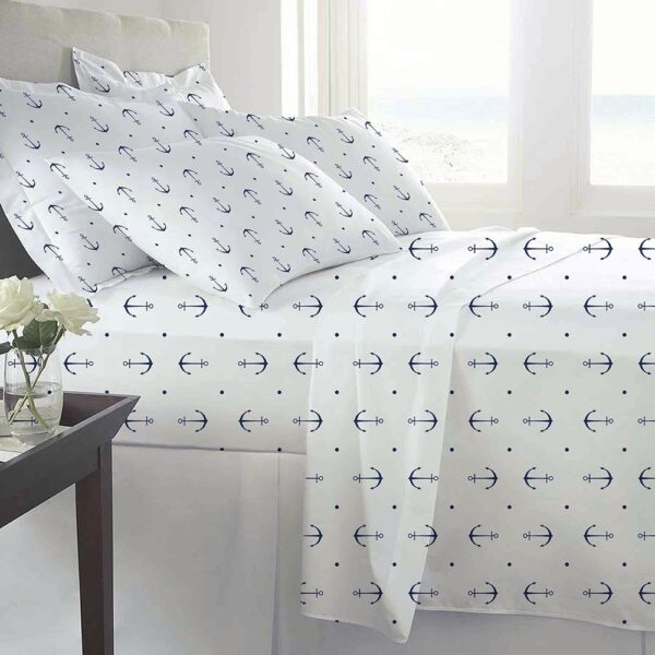 SEA-CLUB pamut paplanhuzat, fehér, horgony motívummal – 135 x 200 cm