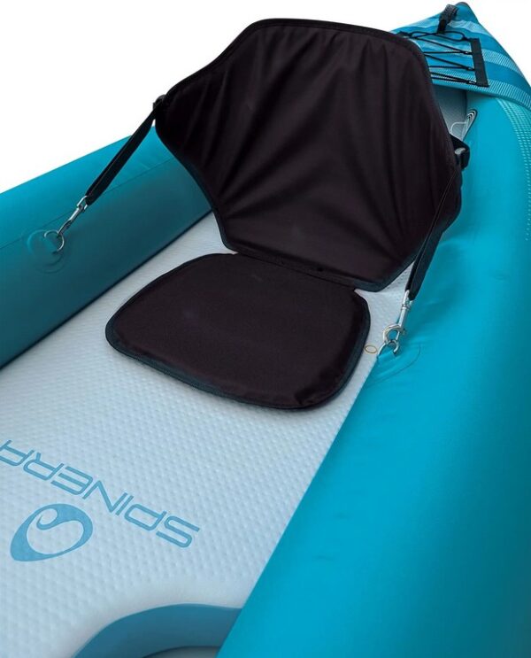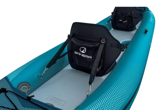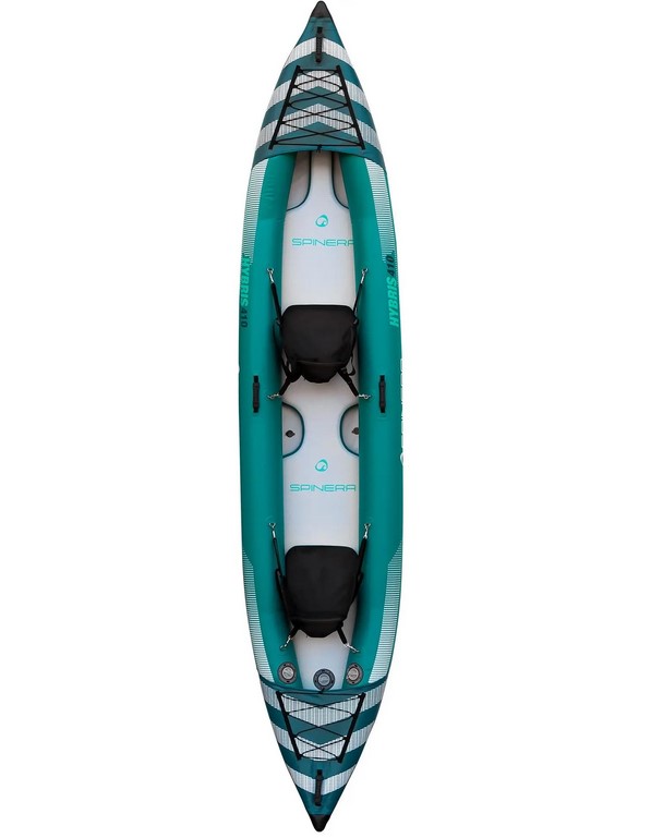 A SPINERA HYBRIS 410 (410 x 90 cm) egy prémium kétszemélyes felfújható kajak, amelyet kivételes sokoldalúságra és teljesítményre terveztek. Könnyű szerkezetének köszönhetően rendkívül hordozható, könnyen tárolható és gyorsan felfújható. Megerősített PVC-ből készült, 8 cm-es HDDS (nagy sűrűségű ejtőernyős) padlóval, amely kivételes stabilitást és kényelmet garantál a hobbi evezéshez, a hosszú túrákhoz folyókon, tavakon és tengeren. A sima alsó lemez kiváló siklási tulajdonságokat biztosít. 410 cm-es hosszával ideális két fő részére, de egy evezős számára is, mivel rengeteg hely van a felszerelésnek.