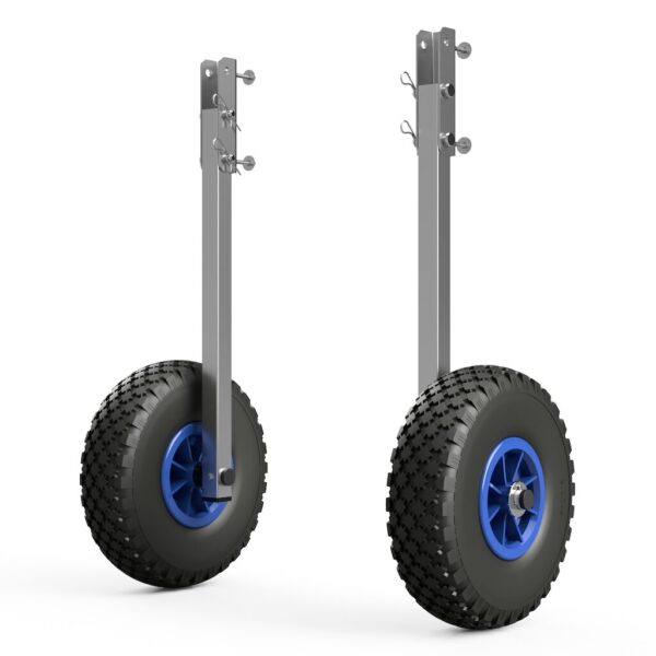 A fekete és kék SUPROD ET260 szállítókerekek sokkal könnyebbé teszik a hajó kezelését. Többé nem lesz szükséged segítségre a hajó vízre bocsátásakor vagy a vízből való kiemelésekor. Az ET260 modell nagyobb kerekekkel rendelkezik az ET200-hoz képest, így könnyebb mozgást biztosít még nehéz terepen is, így függetlenséget biztosít.