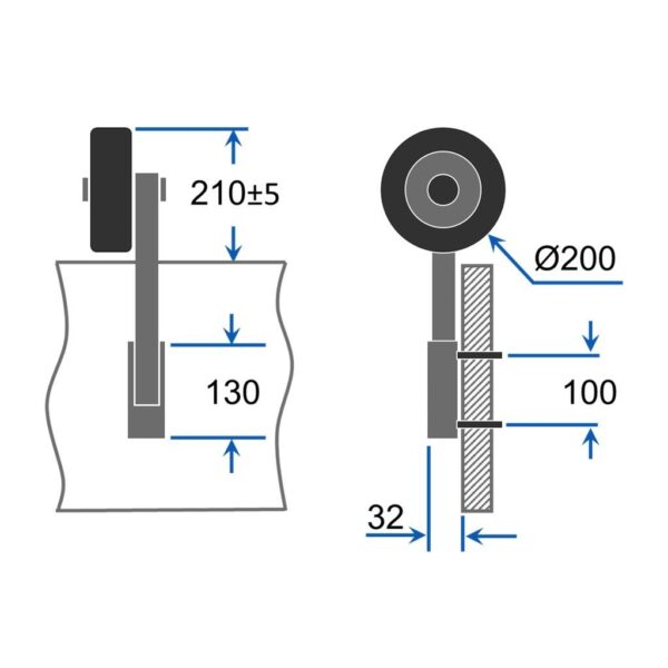- Kerékméretek: Ø 200 mm, szélesség 65 mm (poliuretán gumiabroncs)