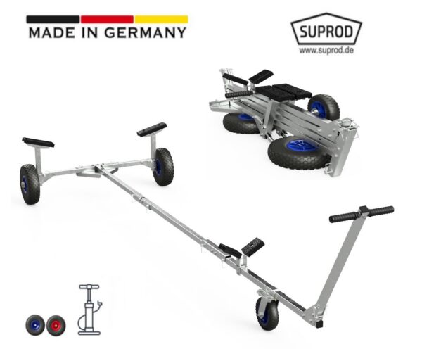 A robusztus német gurulós csónak univerzálisan használható felfújható csónakokhoz, horgászcsónakokhoz, üvegszálas műanyagból készült csónakokhoz, alumínium csónakokhoz és vitorlás csónakokhoz. Erőfeszítést takarít meg. Közúti forgalomra nem alkalmas.