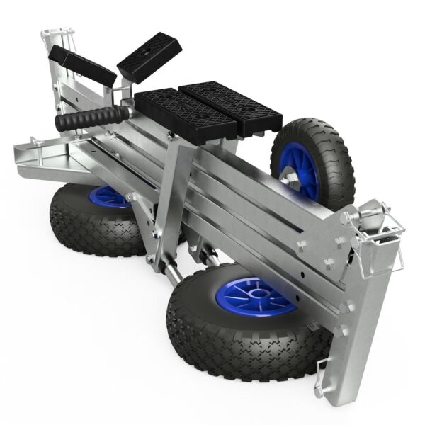 A SUPROD TR260-L-LU fekete/kék szállítókocsi egy meghosszabbított L változat, harmadik kerékkel és megemelt fogantyúval , amelyet a maximális stabilitás és a könnyű kezelhetőség érdekében terveztek. Megkönnyíti a hajó mozgatását. Összecsukható kialakításának köszönhetően könnyen tárolható az autó csomagtartójában vagy a fedélzeten.