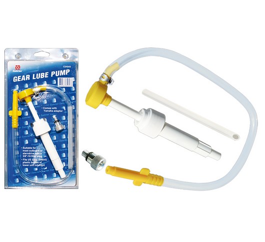 Kézi olajszivattyú kör alakú anyával, közvetlenül rácsavarható egy 946 ml-es olajtartályra (32 oz.).