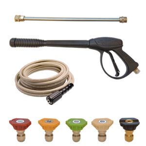 Szett: magasnyomású pisztoly, toldócső, fúvókák és tömlő