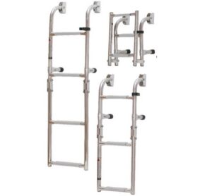 Rozsdamentes acél összecsukható létra lapos rudakkal - szélesség: 25 cm, 3+2 lépcsőfok